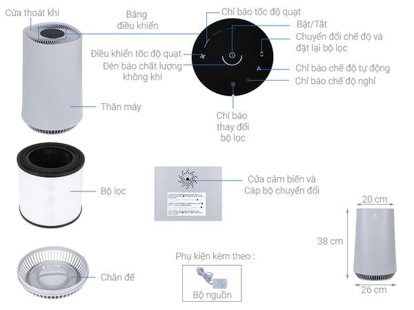 Công suất hoạt động 3.5W - 20W lọc hiệu quả cho diện tích phòng 26 m2, phù hợp để sử dụng cho các phòng vừa và nhỏ như phòng ngủ, phòng khách... Thiết bị tích hợp công nghệ inverter tiết kiệm điện hiệu quả cho gia đình.