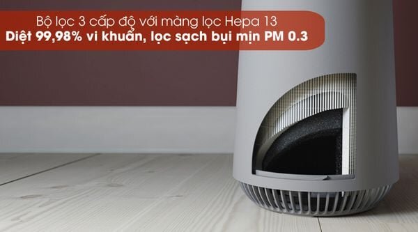 Hoạt động hiệu quả với 3 cấp lọc: lọc thô, lọc than hoạt tính, lọc Hepa 13