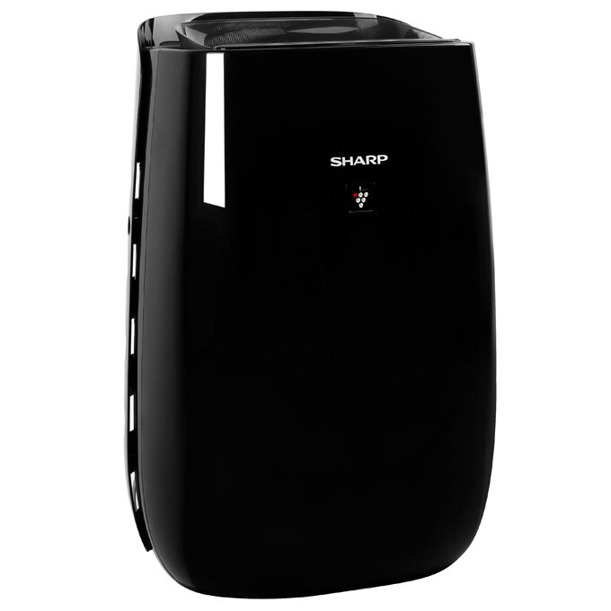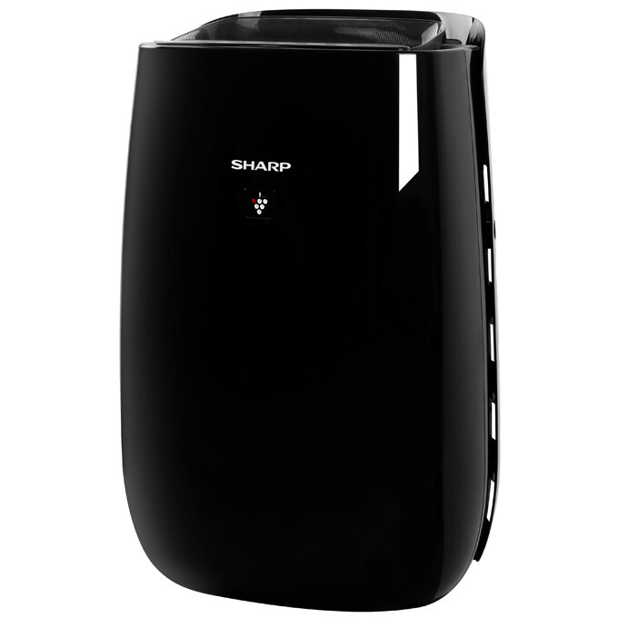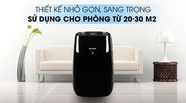 Máy lọc không khí Sharp màu đen sang trọng, kiểu dáng mềm mại, nhỏ gọn, dễ kết hợp trong nhiều không gian