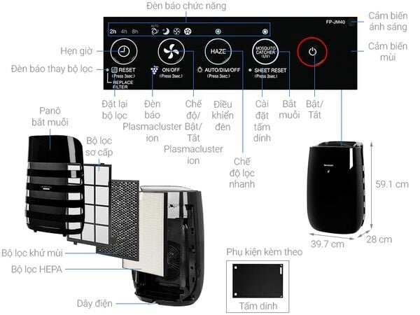 Máy lọc không khí Sharp FP-JM40V-B thương hiệu Sharp – Nhật Bản, sản xuất tại Thái Lan có tính năng bắt muỗi mà không sử dụng hoá chất, cùng khả năng phát ion diệt virus, nấm mốc sẽ mang đến cho gia đình bạn 1 không gian sống trong lành, an toàn.
